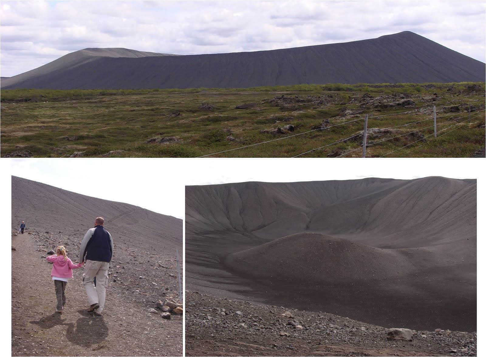 Patrick said we had to climb a volcano so off we went to ascend Hverfjall, a tuff volcano (pseudo volcano). This is not a volcano that would have lava flow out of it but one formed when lava runs over an aquafer, producing steam. The steam then builds and erupts, blowing the earth away and then as the pieces fall down, it forms a crater.